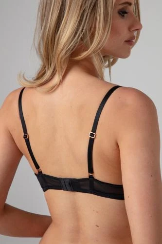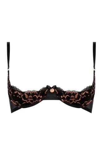 Luxe bh met voorgevormde kwartcups. Zacht kant met koperkleurige accenten geven een verleidelijke en luxe uitstraling. Met beugels, verstelbare bandjes en haakjessluiting.