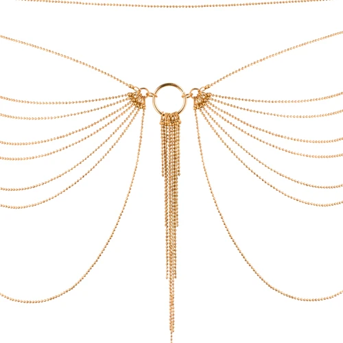 De Magnifique ketting accentueert je heupen voor een schitterende look. Deze bodyketting bestaat uit smalle rijen met een bolvormige structuur. Uiteraard is het sieraad verstelbaar en gemaakt van sterk, duurzaam materiaal. Draag het over kleding of in combinatie met sexy lingerie en maak je outfit verleidelijker dan ooit.