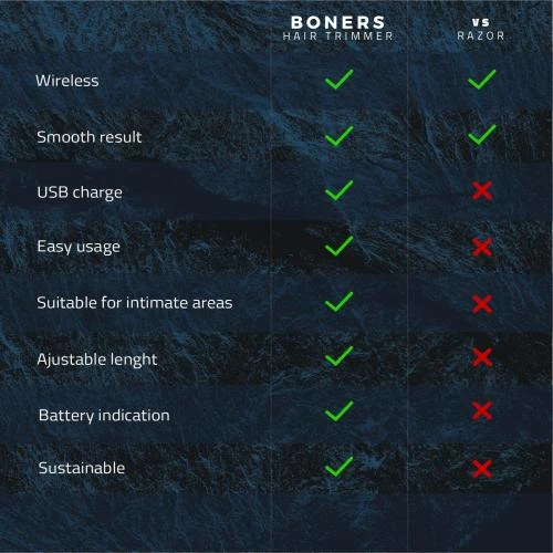 De Boners Hair Trimmer is weer snel op te laden met de bijgeleverde USBkabel. Dankzij de handige oplaadindicator kun je precies zien of dit al nodig is. Neem de trimmer niet mee onder de douche of in bad want deze is niet waterproof.
