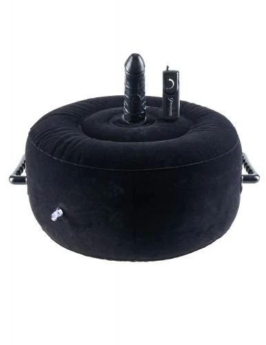 Deze stoel is een comfortabele poef die je kunt opblazen. In het midden van de kussen zit een stevige vibrator die er ook nog eens realistisch uit ziet. Voor extra stevigheid kun je de handgrepen vasthouden of hier accessoires aan bevestigen. Iedere stoot wordt versterkt door de meeverende zitting. Om de zitting op te blazen en leeg te laten lopen gebruik je eenvoudig het ventiel. De vibrator is gemakkelijk schoon te maken met toycleaner en lauwwarm water. De vibraties zijn traploos regelbaar met de draaiknop op de afstandsbediening.