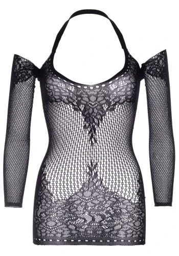 De Twist Halter Jurk is een minijurk van kant met lange mouwen, transparante netstof en een kruisende halterhalslijn. De open schouders zorgen ervoor dat je je sexy en gedurfd voelt. Maak je klaar om in dit verleidelijke jurkje in het middelpunt van de belangstelling te staan!