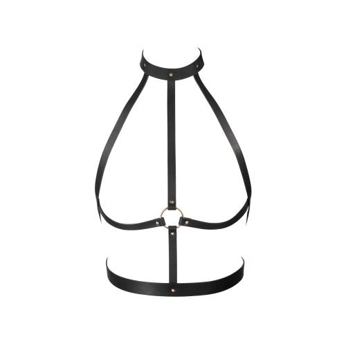 Bondage en lingerie komen samen in dit schitterende harnas van Maze, een merk van Bijoux Indiscrets. Het door BDSM geïnspireerde harnas is gemaakt van topkwaliteit kunstleer. Hierdoor profiteer je van alle looks echt leer zonder dierlijke materialen. Het harnas bestaat uit verschillende riemen en is volledig verstelbaar waardoor het perfect om elk lichaam valt. De bandjes in het midden trekken extra aandacht naar je borsten en worden verbonden door een roségouden ring. Draag het in combinatie met sexy kleding of lingerie en creëer de meest uitdagende looks.