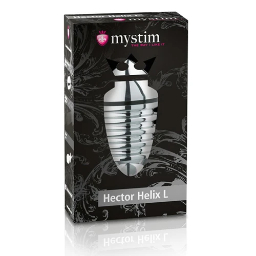 Hector Helix is een Estim buttplug van het merk Mystim. Deze stoere metalen buttplug stimuleert de anus ongekend met zijn geribbelde schacht en elektrostimulatie. De toy is groot, sterk, extra glad en eenvoudig aan te sluiten op een Mystim Powerbox. We adviseren Hector Helix te gebruiken met The Goldfather Glijmiddel. Dit glijmiddel op waterbasis bevat kleine deeltjes goud waardoor elektrostimulatie uitstekend wordt doorgegeven zonder in te leveren op comfort.