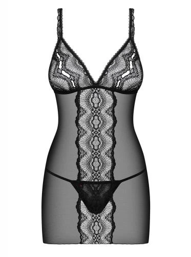 Voel je sexy in deze negligé van Obsessive! Deze negligé heeft een doorschijnende stof en prachtige kanten details. De kanten cups hebben geen beugel en de schouderbandjes zijn verstelbaar. Deze negligé wordt geleverd inclusief bijpassende string. Het materiaal is elastisch voor een goede pasvorm.